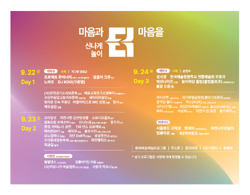 오는 10월 22일부터 10월 24일까지 3일간 열리고 올해 축제는 다양한 장르와 다채로운 공연을 선보인다고 합니다.
