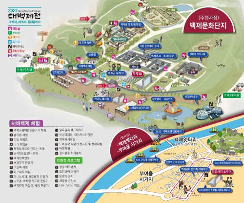 13년 만에 개최되는 부여 백제 문화제가 올해는 새로운 이름 '대백제전'으로 성대하게 개최됩니다. 23일 백제문화단지 주 무대에서 개막식을 시작으로 10월 9일까지 17일간 다채로운 행사들이 펼쳐질 예정입니다. 관람객들의 편의를 위한 무료 셔틀버스 운영과 주차장, 음수대 등의 편의시설도 확충했다고 합니다. 자세한 축제의 일정과 정보를 확인해 보겠습니다.