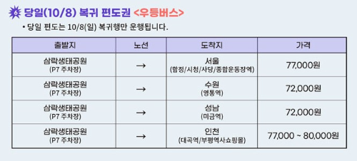 - 탑승 최소인원 미달 시, 운행되지 않거나 다른 지역 노선과 통합 운행될 수도 있습니다. (10월 2일 12:00 확정)