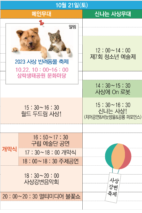 - 일시 : 2023년 10월 21일(토) 10:00 ~ 10월 22일(일) 21:00