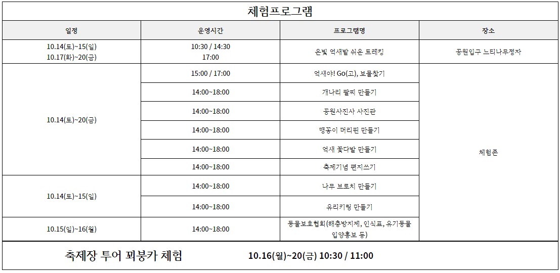 - 운영기간 : 2023년 10월 14일(토) ~ 10월 22일(일)