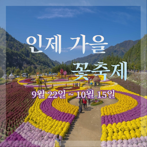강원도 인제에서 만나는 아름다운 가을꽃 축제가 오는 9월 22일(금)부터 10월 15일(일) 24일간의 일정으로 진행됩니다. 국화, 야생화정원 관람뿐만 아니라 다양한 체험 행사도 운영할 계획입니다. 모든 관람은 무료이며 프로그램 유형별로 가격이 상이하므로 확인 후 참가하시기를 바랍니다. 축제기간 동안 진행되는 이벤트도 있으니 지금부터 확인해 보겠습니다.