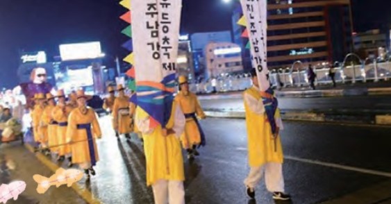 경남문화예술회관부터 유등 전시관까지 3KM 거리를 '진주 시민의 날'과 연계하여 퍼레이드를 진행합니다.