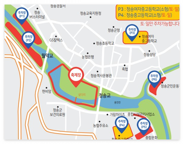 행사기간 : 2023년 11월 1일 (수) ~ 11월 5일 (일) 5일간 / 청송읍 용전천 일원 (현비암 앞)